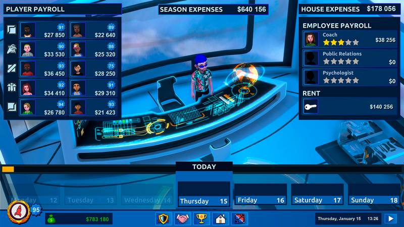 Начните с нуля. Вам предстоит собрать команду, обзавестись офисом, а затем и заняться его обустройством. Понадобится техника и, конечно, атрибуты первой необходимости. Улучшайте способности киберспортсменов, влияйте на их трудоспособность, помогайте развитию профессионального уровня, организуйте для них максимально комфортные условия, участвуйте в соревнованиях. Нужно быть расчетливым и рассудительным, чтобы суметь сделать выбор в пользу наиболее выгодного предложения. У Вас появился шанс проявить свои качества лидера и организатора. Тогда игровой процесс обретает здоровую долю азарта.